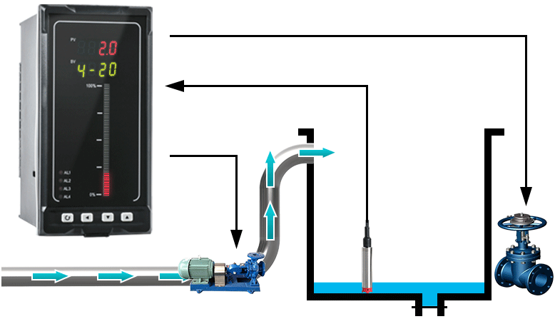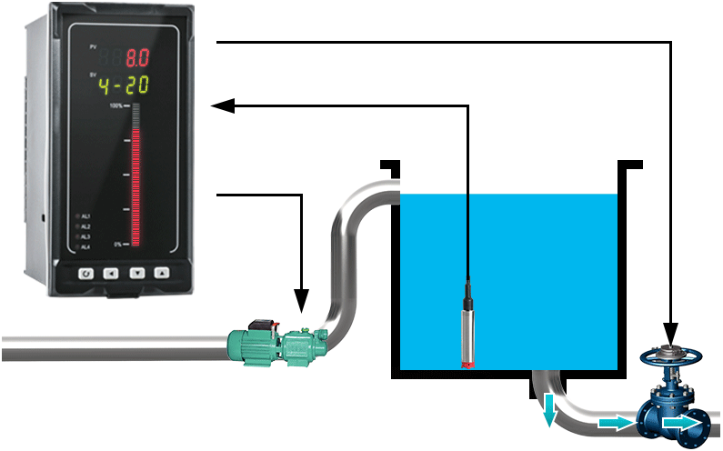 Submersible Level Transmitter with Level Controller for Automated Level Control Solution: